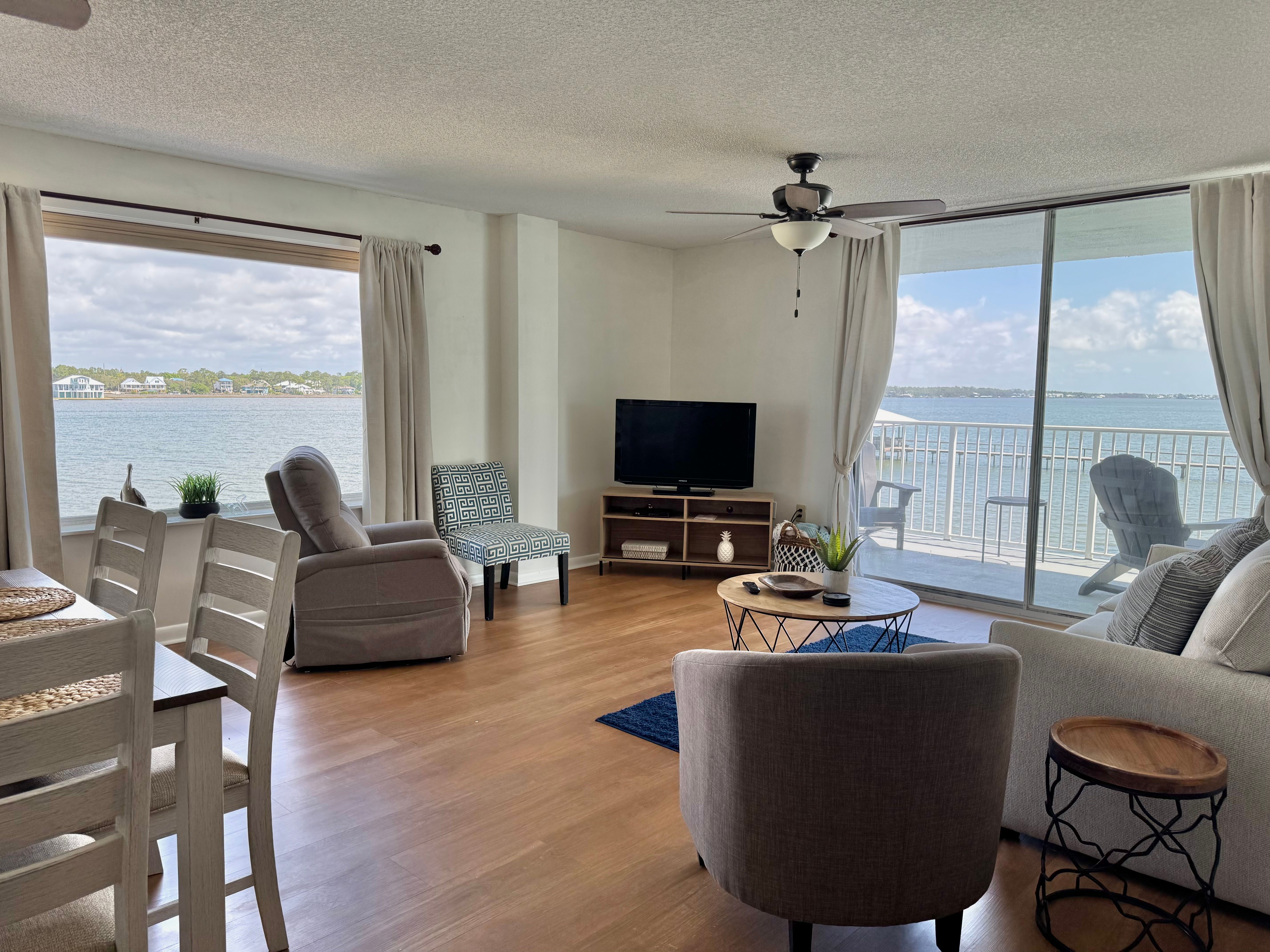 Ocean House #1203 is an interior gulf-front 2 bedroom 2 bath condominium located on the 2nd floor in building I overlooking the Gulf of Mexico. The unit is approximately 1000 sq ft with views of the gulf from the living room and gulf-side master bedr