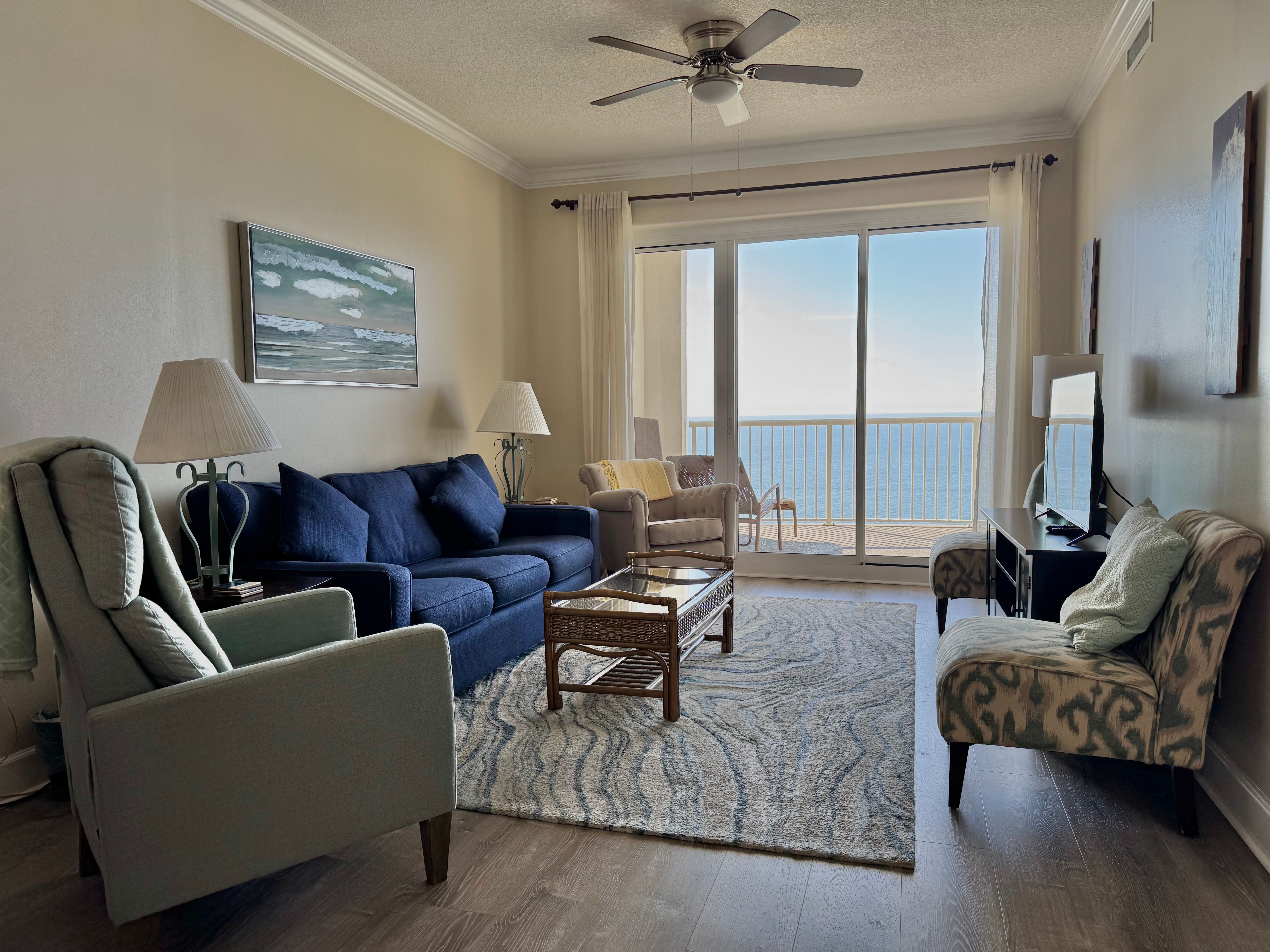 Island Royale #1105 is an interior gulf-front 2 bedroom 2 bath condominium located on the 11th floor overlooking the Gulf of Mexico. The unit is approximately 1015 sq ft with views of the gulf from the living room and gulf-side master bedroom. The co