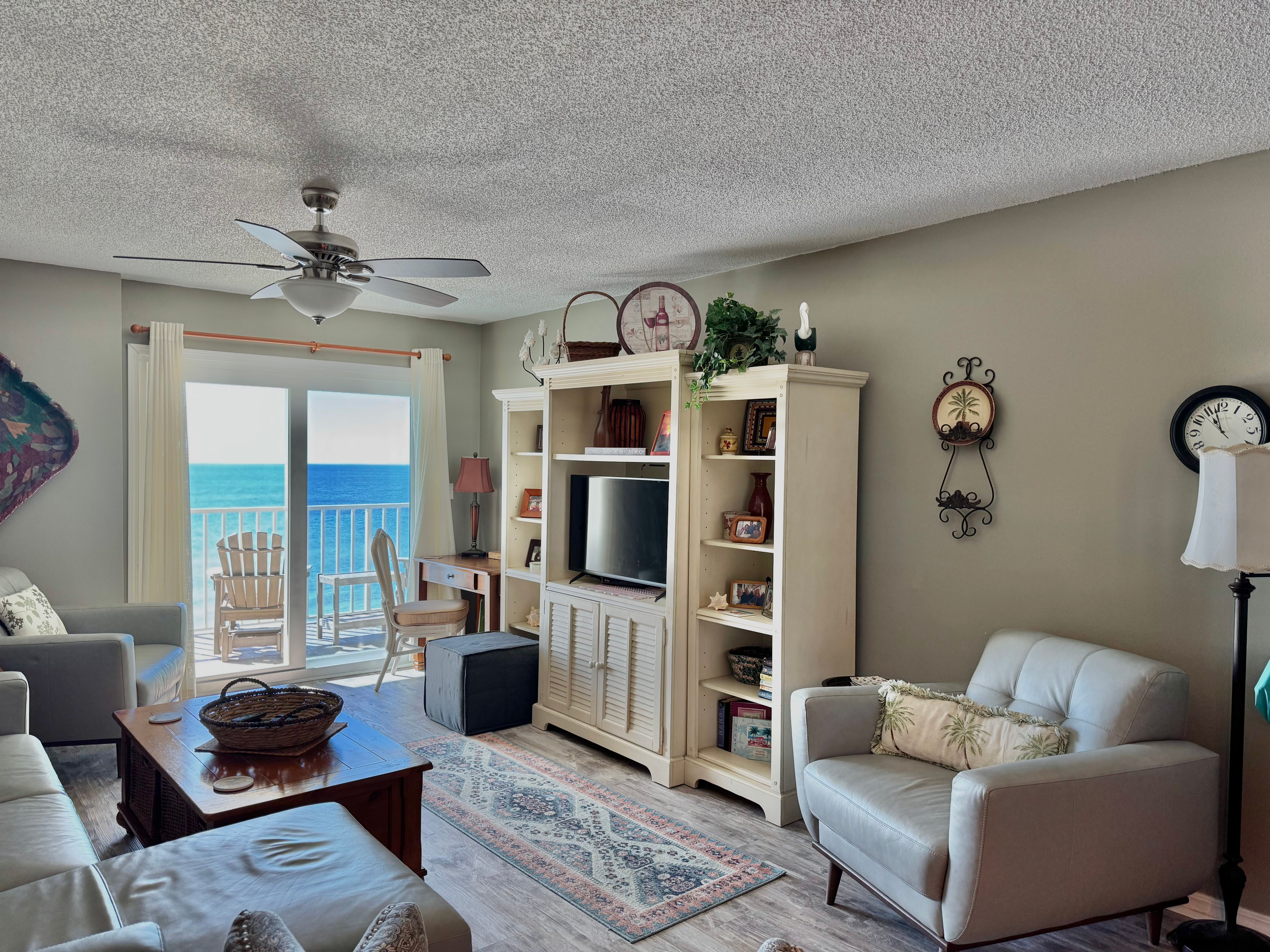 Ocean House #2702 is an interior gulf-front 2 bedroom 2 bath condominium located on the 7th floor in building II overlooking the Gulf of Mexico. The unit is approximately 1000 sq ft with views of the gulf from the living room and gulf-side master bed